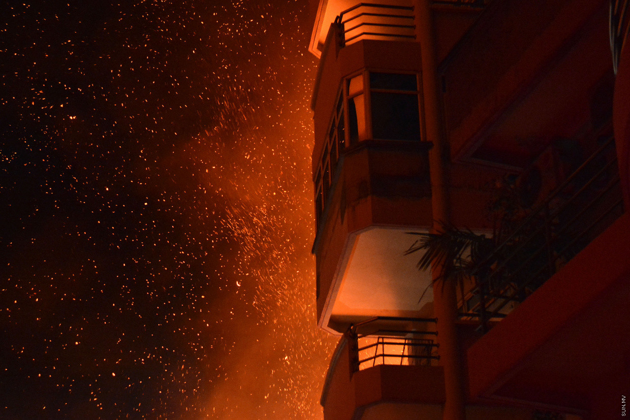 ހެންވޭރުގައި ގުދަނެއް ގޮވައި، އަލިފާންގަނޑު ފެތުރިގަތް ވަގުތު އެ ސަރަހައްދުގެ ގިނަ ގެތަކުން މީހުން ހުސްކުރިއެވެ. އަލިފާންގަނޑު ޖުމްލަ ހަތް އިމާރާތަކަށް ފެތުރުނެވެ.