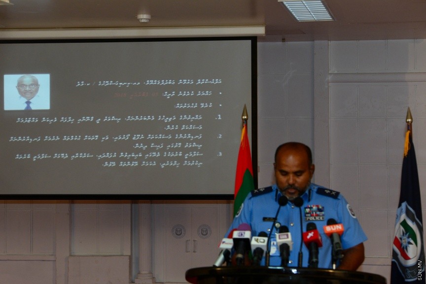 އެކްޓިންގް ކޮމިޝަނަރ އޮފް ޕޮލިސް އަބްދުﷲ ނަވާޒް މިއަދު ނޫސްވެރިންނަށް މައުލޫމާތު ދެއްވަނީ -- ސަން ފޮޓޯ/ މުހައްމަދު އަފްރާހު