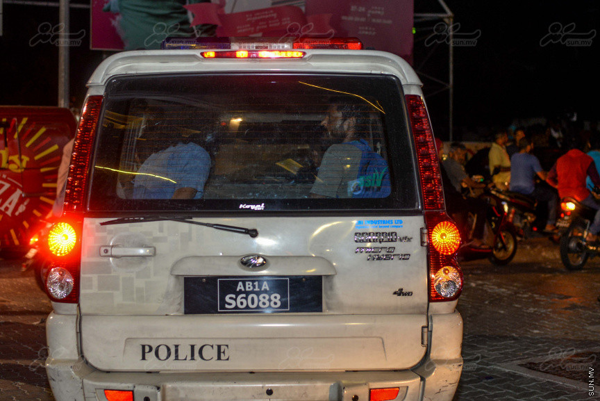 ފުލުހުންގެ ވެހިކަލެއްގައި ވީ މީޑީއާގެ ޓެކްނީޝަނަކު ހައްޔަރުކޮށްގެން ގެންދަނީ --- ސަން ފޮޓޯ/ މުހައްމަދު އަފްރާހް