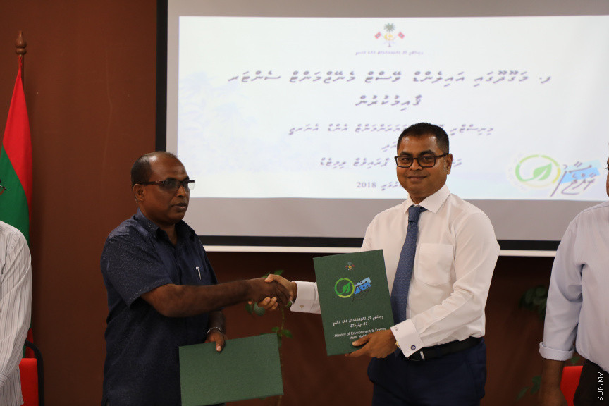 އެއްބަސްވުމުގައި ސޮއިކުރުމަށްފަހު--- ފޮޓޯ/ އެންވާރަމަންޓް މިނިސްޓްރީ