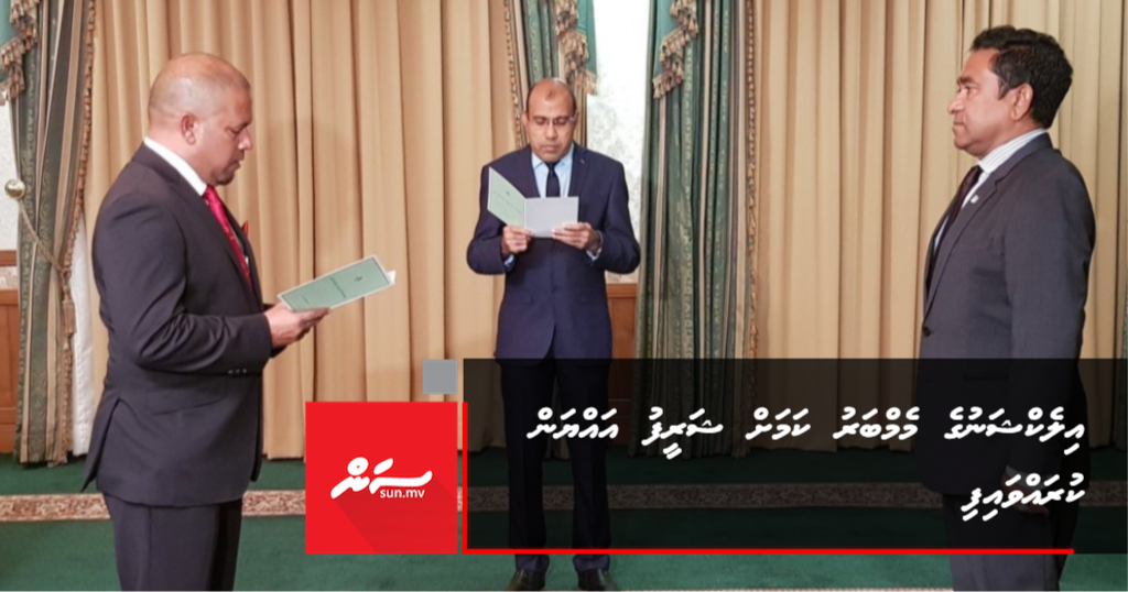 މިއަދު ރައީސް އޮފީހުގައި ބޭއްވި ރަސްމިއްޔާތެއްގައި ޝަރީފު ވަނީ އިލެކްޝަންސް ކޮމިޝަނުގެ މެމްބަރު ކަމުގެ ހުވާ ރައީސް އަބްދުﷲ ޔާމީން އަބްދުލްގައްޔޫމުގެ ކުރިފުޅުމަތީގައި ކުރައްވައިފަ އެވެ.