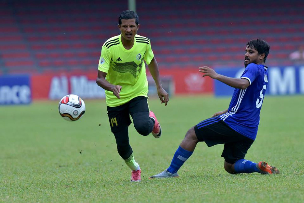 ދެވަނަ ޑިވިޝަންގެ ސެމީގައި މިއަދު ޖޭޖޭ ސްޕޯޓްސްއާއި ޕީކޭ ވާދަކުރި މެޗުގެ ތެރެއިން --- ފޮޓޯ/ އެފްއޭއެމް