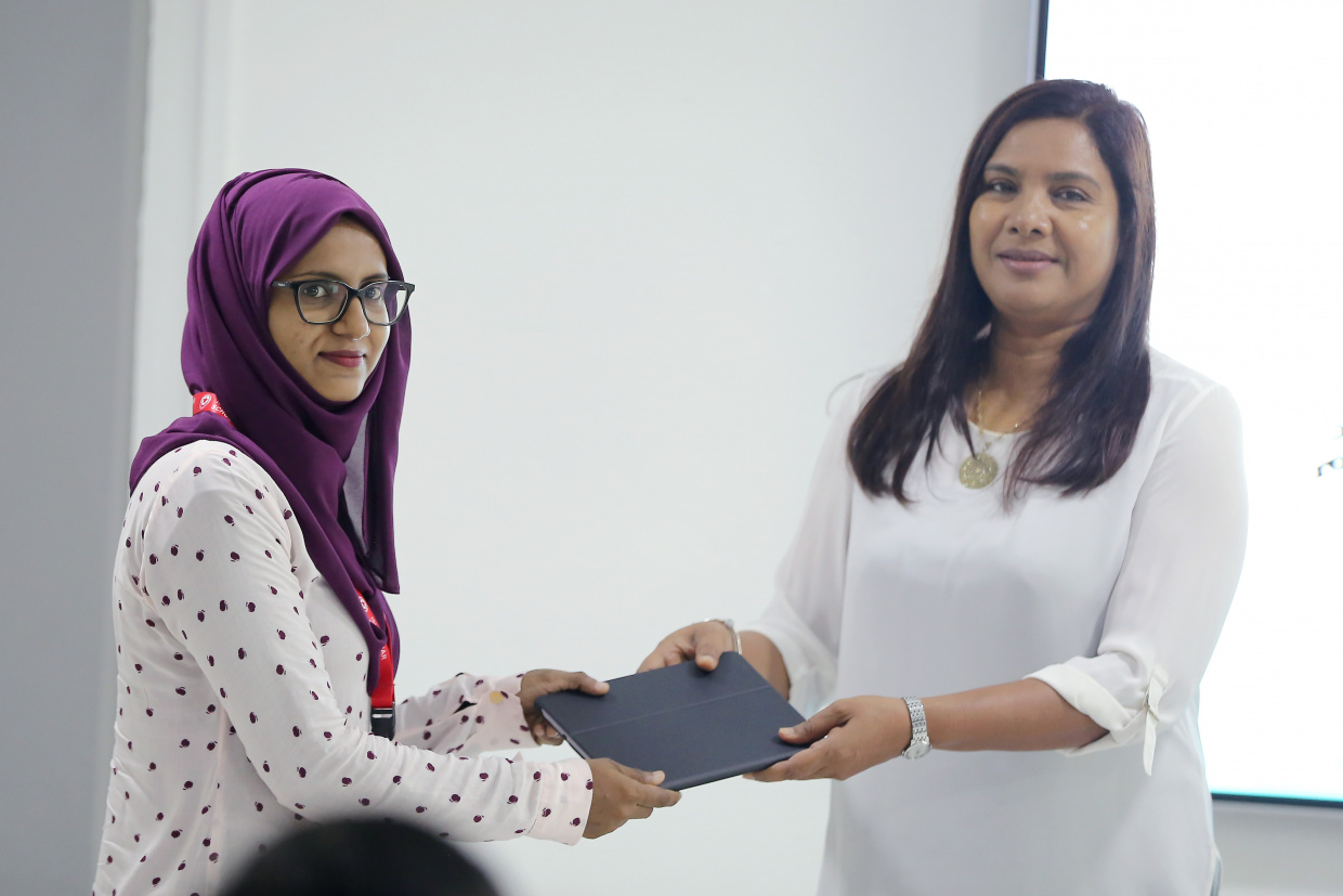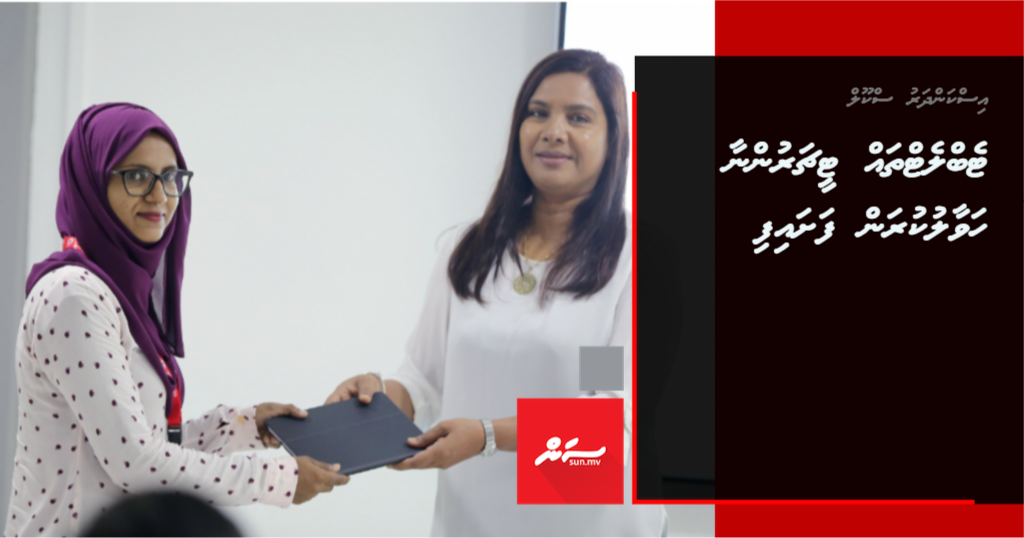 އިސްކަންދަރު ސްކޫލުގެ ޓީޗަރުންނާ ޓެބްލެޓްތައް ހަވާލުކުރުމަށް ބޭއްވި ރަސްމިއްޔާތުގެ ތެެއިން-- ފޮޓޯ: ފަޔާޒު މޫސާ
