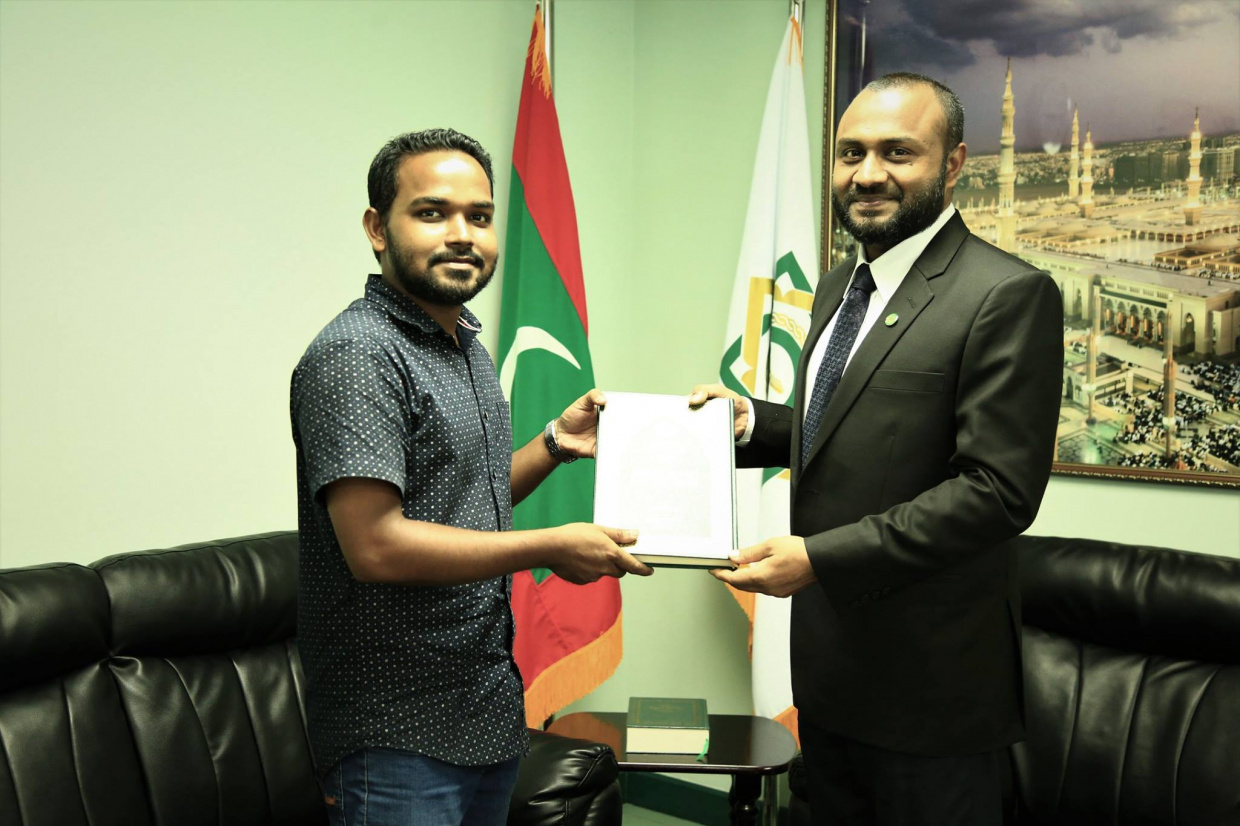 އައިޔޫއެމް އިން ބެޗްލާސް އޮފް ޓީޗިން ޤުރުއާން ވިތް އޮނާސް ޕްރޮގްރާމްގައި ކިޔަވަމުންދާ އަޝްރަގަށް މިއަދު އައިޔޫއެމްގެ ފަރާތުން ސްކޮލަޝިޕް ހަވާލުކުރީ އެ ޔުނިވާސިޓީގެ ޗާންސެލަރު ޑރ. މުހައްމަދު ޝަހީމް އަލީ ސައީދު އެވެ.