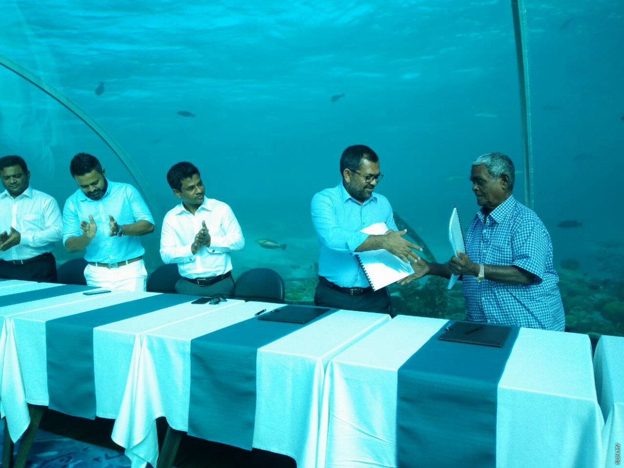 މިއަދު ހުރަވަޅި މޯލްޑިވްސްގެ ކަނޑުއަޑީގެ ރެސްޓޯރެންޓުގައި ބޭއްވި ރަސްމިއްޔާތެއްގައި އެއާޕޯޓުގެ މަސައްކަތުގެ އެއްބަސްވުމުގައި ވަނީ ސޮއިކޮށްފައެވެ. ކުރެއްދޫ ހޯލްޑިންގްސްގެ ފަރާތުން އެއްބަސްވުމުގައި ސޮއިކުރެއްވީ ޗަމްޕާ މުހައްމަދު މޫސާ އެވެ. ސަރުކާރުގެ ފަރާތުން ސޮއިކުރެއްވީ ޓުއަރިޒަމް މިނިސްޓަރު މޫސާ ޒަމީރެވެ.