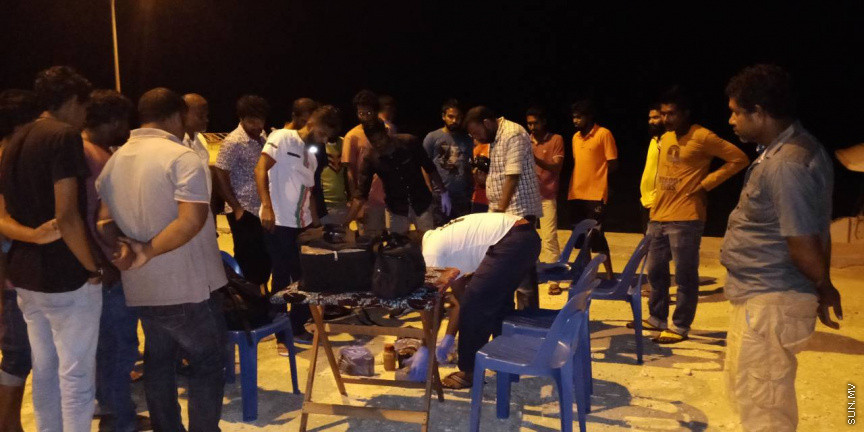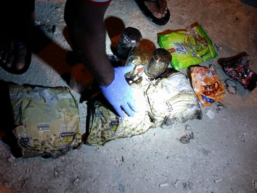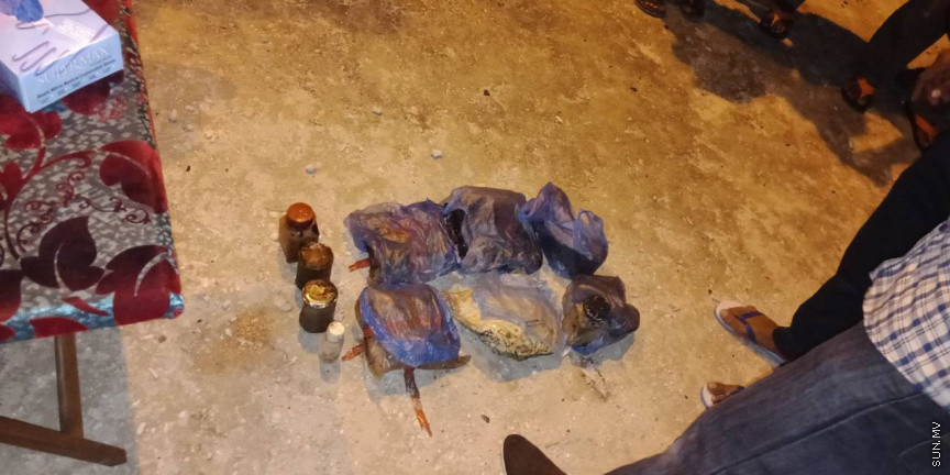 އުލަގަމަށް ލައްގާފައި މަސްތުވާތަކެތި ކަމަށް ބެލޭވޭ އެއްޗެހިތަކެއް ލައްގައިގެން ފުލުހުން ހަރަކާތްތެރިވަނީ--ފޮޓޯ ކިޔުންތެރިއެއް