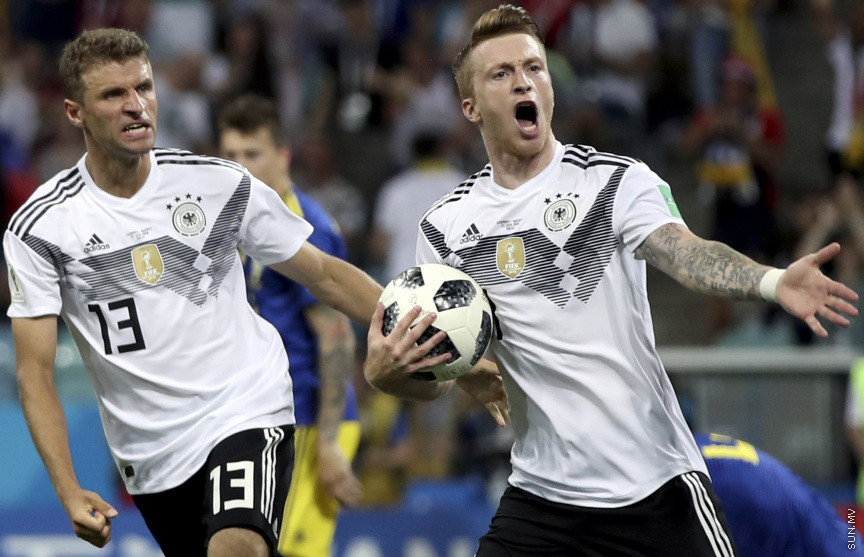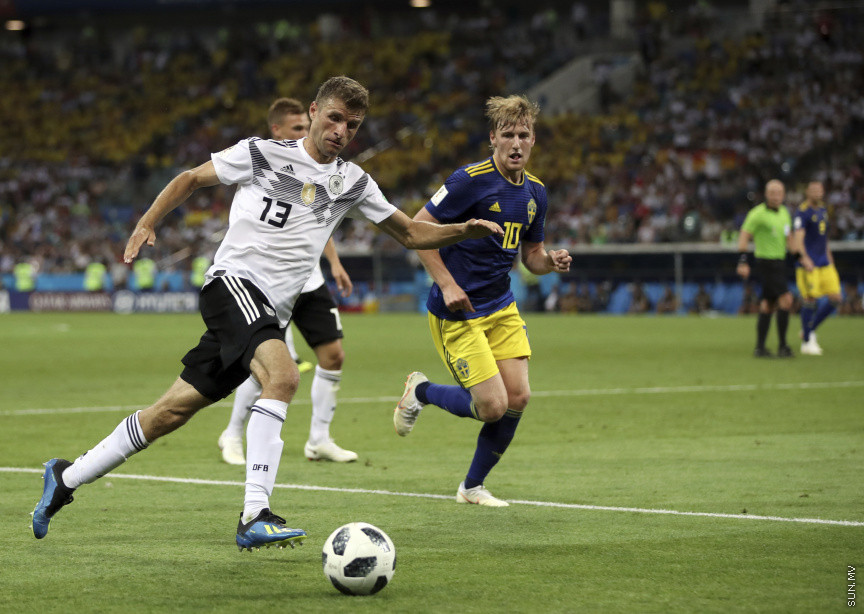 ޖަރުމަނާއި ސްވިޑެން ވާދަކުރި މެޗުގެ ތެރެއިން: އެ މެޗު 2-1ގެ ނަތީޖާއަކުން ކާމިޔާބުކުރީ ޖަރުމަނުން --- ފޮޓޯ/ އޭޕީ
