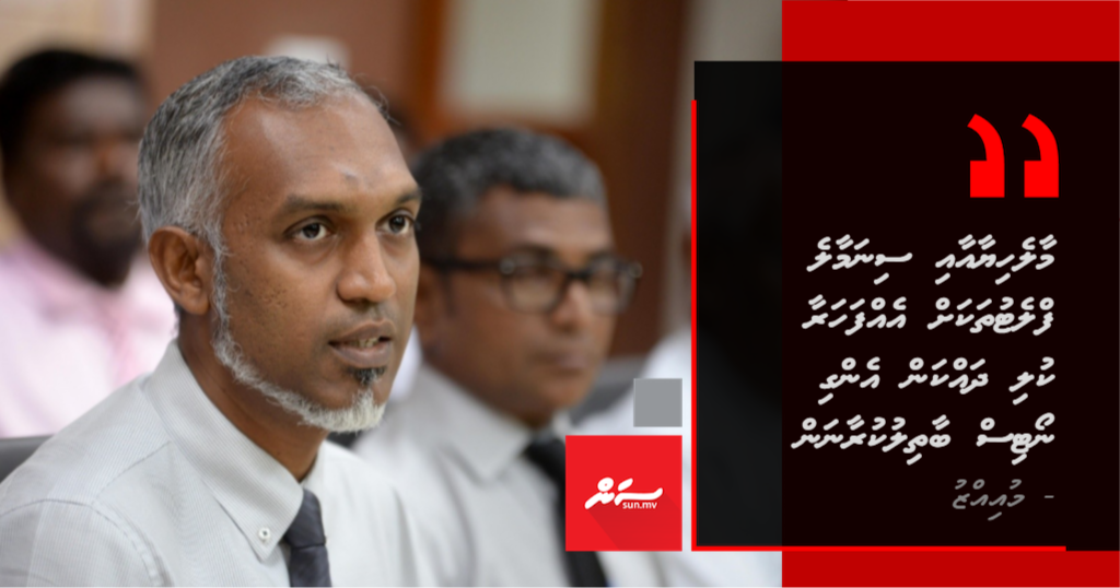 "ރައްޔިތުން ތަކަކަށް ނަހަމަ ގޮތުގައި އަނިޔާ ކުރުމަށާއި ކަންތައްތަކަށް މަޖުބޫރުކޮށް ކަންބޮޑުވާނެ ގޮތްތަކެއް މެދުވެރިކުރުވުމުގެ ފުރުސަތު ނުދޭނަން،" މުއިއްޒު ވިދާޅުވިއެވެ.