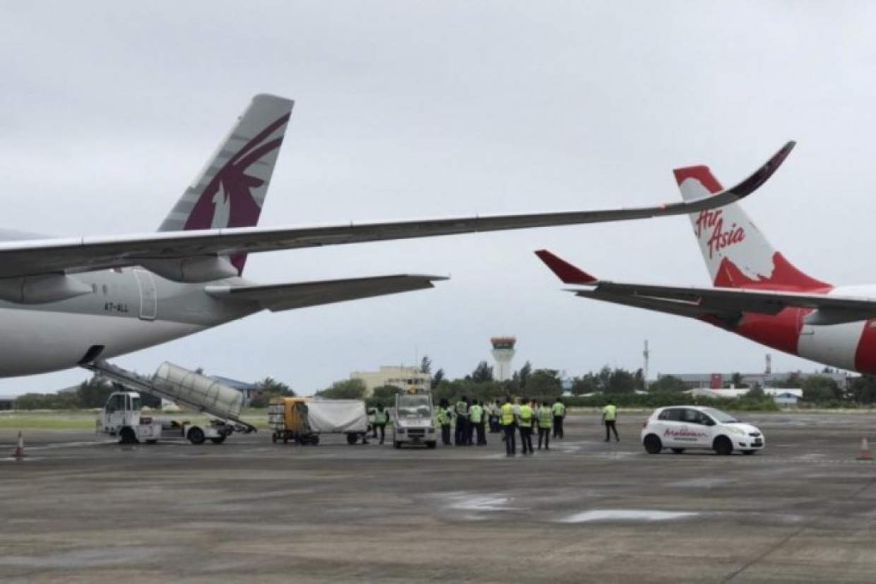 މިއަދު ހެނދުނު 9:15 ހާއިރު އެ އެކްސިޑެންޓް ހިނގާފައި ވަނީ އެއާ އޭޝިއާގެ ބޯޓަކާއި ގަތަރު އެއާވޭސްގެ ބޯޓެއްގެ ފިޔަގަނޑު ޖެހިގެންކަން ވަނީ އެނގިފައެވެ.