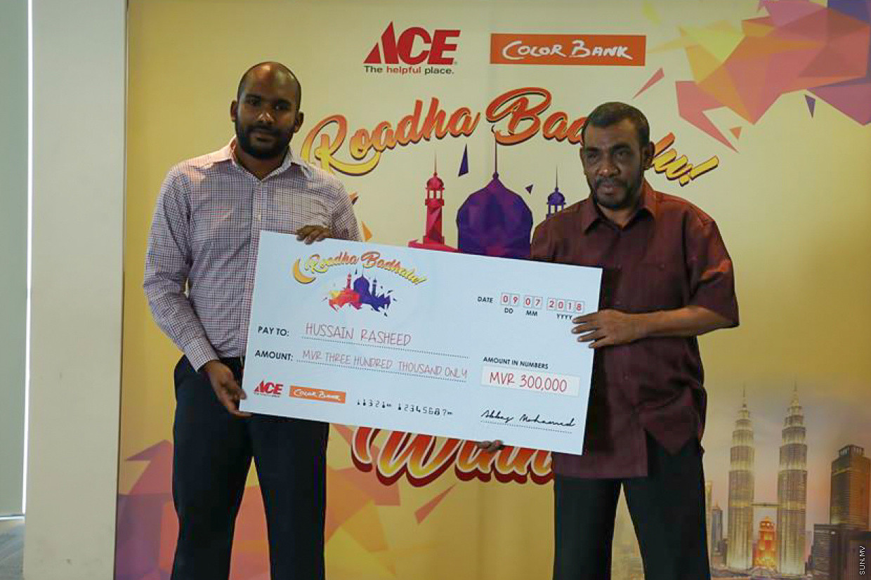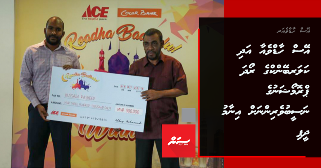 "ރޯދަ ބަދަލު" ޕްރޮމޯޝަން ކުރިއަށް ގެންދިޔައީ ކަލަރބޭންކާއި އޭސް ހާޑްވެއާއިން 300 ރުފިޔާއިން މަތީގެ ވިޔަފާރި ކުރާ ކޮންމެ ކަސްޓަމަރަކަށްވެސް ބައިވެރިވެވޭ ގޮތަށެވެ. މި ޕްރޮމޯޝަނުގެ ނަސީބުވެރިޔާއަށް ހުށަހެޅި އިނާމަކީ ނަގުދު ފައިސާއިން 300،000 ރުފިޔާއެވެ.
