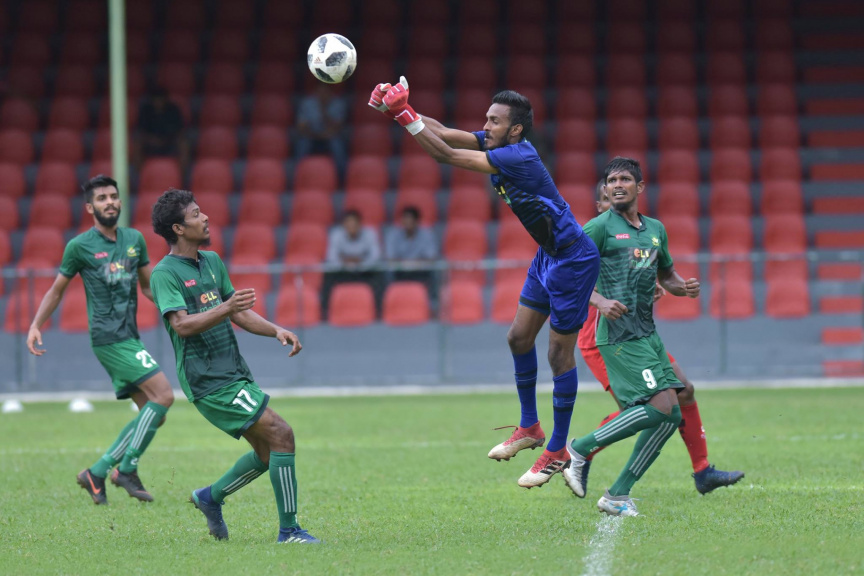 ދިވެހި ޕްރިމިއާ ލީގުގައި ޓީސީއާއި މާޒިޔާ ކުޅުނު މެޗުގެ ތެރެއިން: އެ މެޗު 3-0ގެ ނަތީޖާއަކުން ކާމިޔާބުކުރީ ޓީސީ --- ފޮޓޯ/ އެފްއޭއެމް