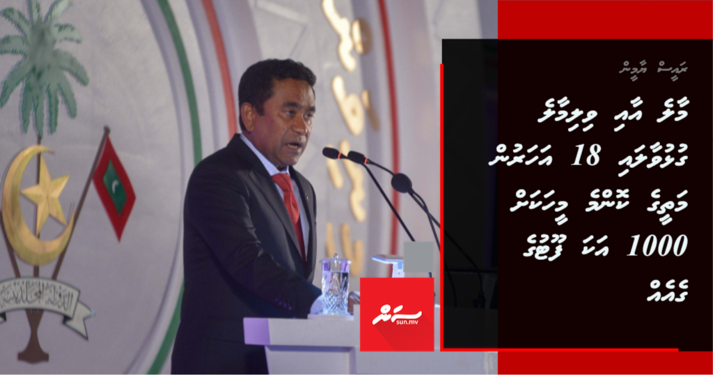 ވިލިމާލެ އާއި މާލެ ގުޅުވާލައި 18 އަހަރުން މަތީގެ ކޮންމެ މީހަކަށް 1000 އަކަ ފޫޓުގެ ބިމެއް ނުވަތަ އެވަރުގެ ތަނަވަސްކަން ހުރި އެޕާޓްމެންޓެއް ދެއްވާނެ ކަމަށް ރައީސް އަބްދުﷲ ޔާމީން އަބްދުލް ގައްޔޫމް މިރޭ ވިދާޅުވެއްޖެއެވެ.