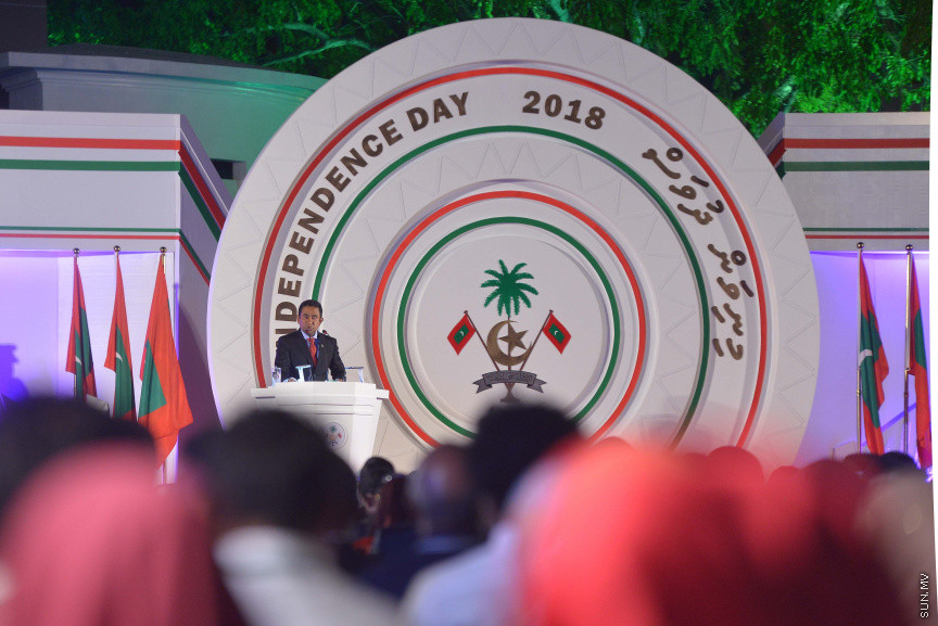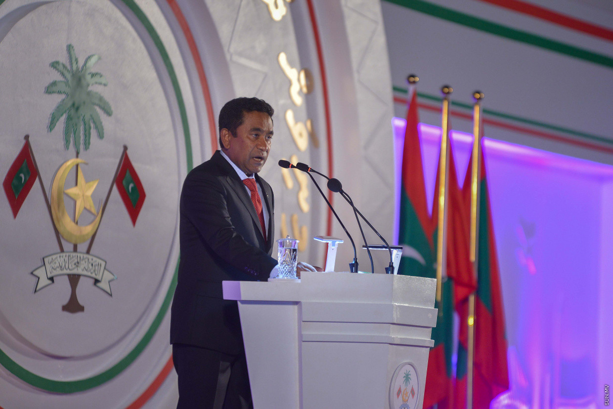 މިނިވަންދުވަހުގެ މުނާސަބަތުގައި ބޭއްވި ޖަލްސާގައި ރައީސް ޔާމީން ވާހަކަފުޅު ދައްކަވަނީ --- ސަން ފޮޓޯ/ މުހައްމަދު އަފްރާހް
