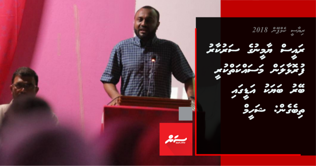 ފުވައްމުލައް ސިޓީ އަށް މިހާރު ކުރައްވަމުން ދެންދަވާ ކެމްޕެއިން ދަތުރުފުޅުގައި ދޫޑިގަން އަވަށުގެ ރައްޔިތުންނާ ބައްދަލުކުރައްވައި ވާހަކަ ދައްކަވަމުން ޝަހީމް ރޭ ވިދާޅުވީ ރައީސް ޔާމީންގެ ވެރިކަން ފުރޮޅާލަން މަސައްކަތް ކުރީ ދިވެހިން ނޫން ކަމަށެވެ.
