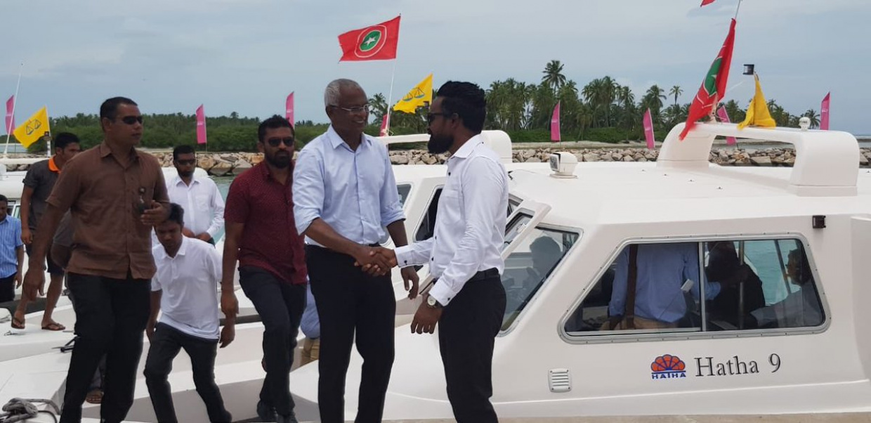 ރިޔާސީ އިންތިހާބްގެ ކެމްޕެއިނަށް އިބޫ މިއަދު ނަޑެއްލާއަށް ވަޑައަގަތުމުން މަރުހަބާ ދަންނަވަނީ --- ފޮޓޯ: އެމްޑީޕީ