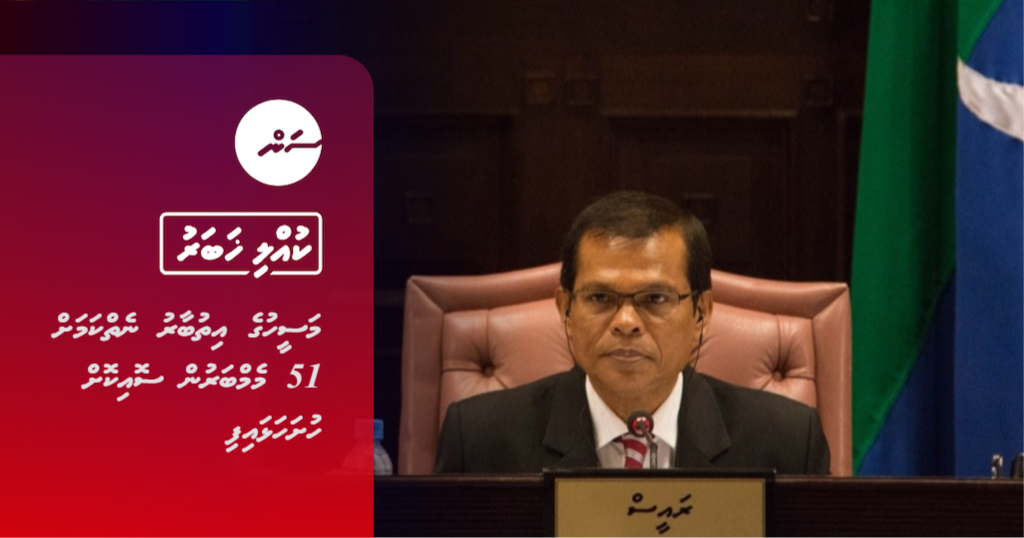 ރައްޔިތުންގެ މަޖިލީހުގެ ރައީސް އަބްދުﷲ މަސީހު މުހައްމަދުގެ އިތުބާރު ނެތް ކަމުގެ މައްސަލަ 51 މެމްބަރުން ސޮއިކޮށް މިއަދު މަޖިލީހަށް ހުށަހަޅައިފި އެވެ.