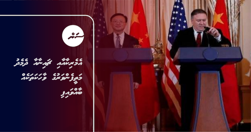 ވޮޝިންޓަން (ނޮވެމްބަރު 10): އެމެރިކާއާއި ޗައިނާއާ ދެމެދު ވޮޝިންޓަންގައި ކުރިޔަށްދިޔަ ވާހަކަތައް އަމާޒުކުރީ ދެގައުމުގެ ދެމެދުގައި މިދުވަސްވަރު އެންމެ ބޮޑަށް ޚިލާފް އުފެދިފައިވާ މައްސަލަތަކަށްކަން އެމެރިކާ ހާމަކޮށްފިއެވެ.