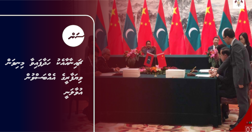 ރާއްޖެ އާއި ޗައިނާ އާ ދެމެދު މިނިވަން ވިޔަފާރީގެ އެއްބަސްވުމެއްގައި ސޮއިކޮށްފައިވަނީ މިދިޔަ އަހަރުގެ ޑިސެމްބަރުމަހު ކުރީގެ ރައީސް އަބްދުﷲ ޔާމީން އަބްދުލްގައްޔޫމު ޗައިނާ އަށް ކުރެއްވި ދަތުރުފުޅުގެ ތެރެއިންނެވެ.