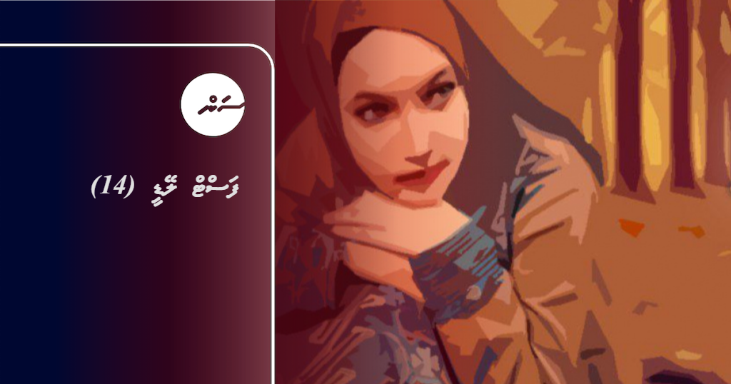ހަޔާތީގެ ކަރުގައި ގާގަނޑެއް ތާށިވެފައި އޮތްފަދައެވެ. އަނގައިން ބުނާނެ ހިތްވަރެއް ނުލިބި އިޝްކަން ހުރި ބައި ދައްކައިލެވުނީ އަތުގެ އިޝާރާތުންނެވެ. އެތެރެއަށް ވަދެ ދޮރު ލައްޕައިލެވުނެވެ. ސަމާއަށް ބަލައިލެވުނީ ސުވާލުގެ ނަޒަރަކުންނެވެ.