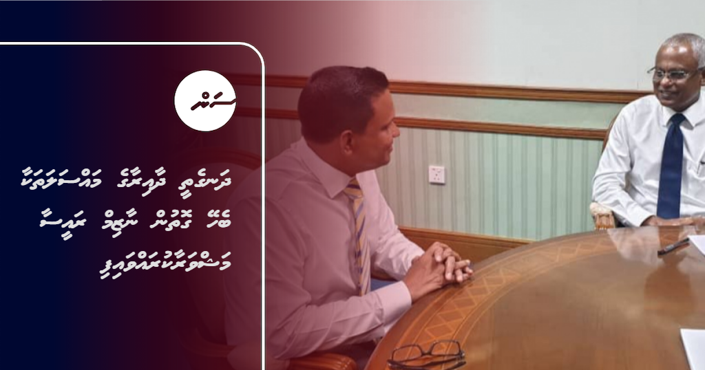 ކާނަލް ނާޒިމް ރައީސް ސޯލިހާ ބައްދަލު ކުރެއްވީ އިއްޔެގެ ވަގުތެއްގަ އެވެ. ނާޒިމް 'ސަން' އަށް މިއަދު ވިދާޅުވީ އެ ބައްދަލުވުމުގައި މަޝްވަރާ ކުރެވުނީ ދަނގެތީ ދާއިރާގެ ރައްޔިތުންގެ ހުރި ކަންބޮޑުންތަކާ ބެހޭ ގޮތުން ކަމަށެވެ.