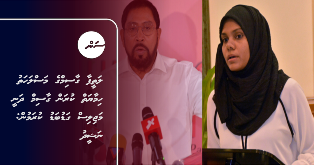 ޖުޑިޝަލް ސާވިސް ކޮމިޝަން (ޖޭއެސްސީ)އަށް ގާނޫނީ ވަކީލުންގެ ތެރެއިން ކަނޑައަޅާފައިވާ މެމްބަރު ލަތީފާ ގާސިމް އޭނާގެ މަގާމުގައި ބަހައްޓަން ރައްޔިތުންގެ މަޖިލީހުގެ ރައީސް ގާސިމް އިބްރާހިމް އެ މަޖިލިސް ގަޑުބަޑު ކުރަމުންދާ ކަމަށް ކުރީގެ ރައީސް މުހައްމަދު ނަޝީދު ތުހުމަތު ކުރައްވައިފި އެވެ.