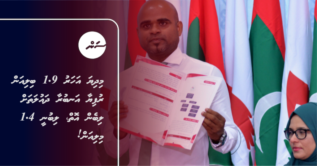 "ދެ ހާސް އަށާރަ ވަނަ އަހަރުގެ ތެރޭގައި ދައުލަތަށް އަނބުރާ ލިބިފައިވާ ކަމަށް އަޅުގަނޑުމެންގެ ރިކޯޑްސްތަކުން ދައްކަނީ 1.4 މިލިއަން ރުފިޔާ. މިއީ ކުރިން އަޅުގަނޑު ފާހަގަ ކުރި ފައިސާތަކުގެ ތެރެއިން އަޅުގަނޑުމެންނަށް ރިކަވާ ކުރެވިފައި އިން ކަމަށް ދައުލަތުގެ އިދާރާތަކުގެ ރެކޯޑްސްތަކުން ދައްކާ ފައިސާ،"