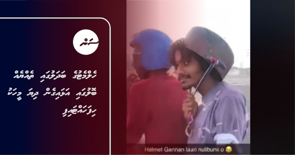 ރޭ 12އިން ފެށިގެން ބްރިޖުމަތިން ހުރަސް ކުރެވޭނީ ހެލްމެޓް އަޅައިގެންނެވެ. މިއަދު މީހަކު ހެލްމެޓްގެ ބަދަލުގައި ތެއްޔެއްގައި ވާގަނޑެއްޖަހައިގެން ބޮލުގައި އަޅައިގެން ދާ ވީޑިއޯ ވަނީ ސޯޝިއަލް މީޑިއާގައި އާންމުވެފަ އެވެ.