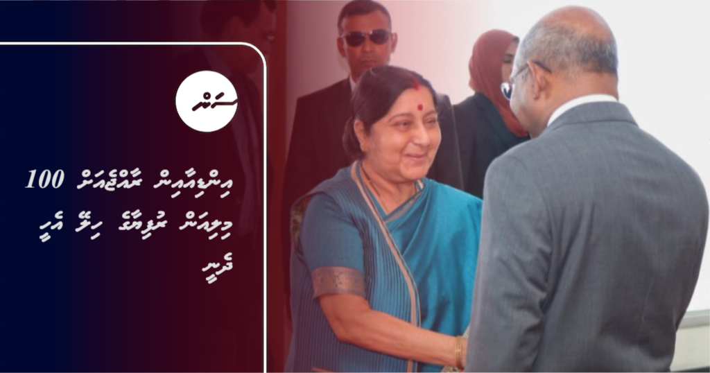 އިންޑިއާ އިން ރާއްޖެއަށް 100 މިލިއަން ރުފިޔާއާއި ހަމައަށް ހިލޭ އެހީ ދިނުމަށް އެއްބަސްވެއްޖެއެވެ. މިކަމަށް އެއްބަސްވެފައިވަނީ އިންޑިއާގެ އެކްސްޓާނަލް އެފެއާޒް މިނިސްޓަރު ސުޝްމާ ސުވަރާޖު މިހާރު ރާއްޖެއަށް ކުރައްވަމުން ގެންދަވާ ދަތުރުފުޅުގެ ތެރެއިންނެވެ.