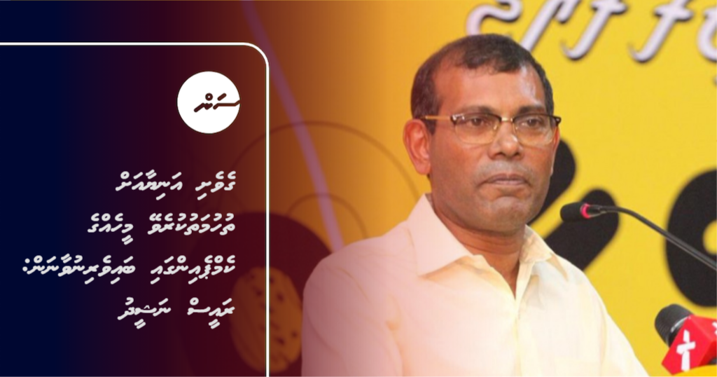 ގެވެށި އަނިޔާއަށް ތުހުމަތުކުރެވޭ މީހެއްގެ ކެމްޕެއިންގައި ބައިވެރިނުވާނެ ކަމަށް ކުރީގެ ރައީސް އަދި އެމްޑީޕީ ގެ ރައީސް މުހައްމަދު ނަޝީދު ވިދާޅުވެއްޖެ އެވެ.