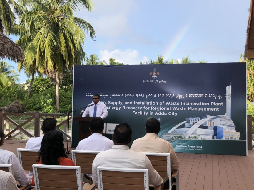 އަައްޑޫގައި ކުނިން ކަރަންޓް އުފެއްދުމުގެ މަޝްރޫއުގައި ސޮއިކުރުމަށް ބޭއްވި ރަސްމިއްޔާތުގެ ތެރެއިން--- ފޮޓޯ: އެންވަޔަރަމަންޓް މިނިސްޓްރީ