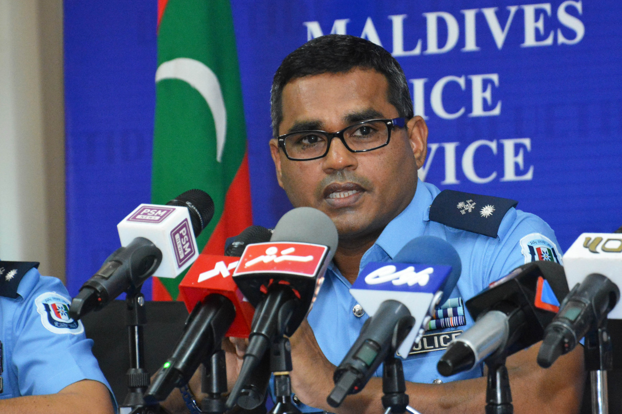މިއަދު ފުލުހުން ބޭއްވި ނޫސްވެރިންގެ ބައްދަލުވުމުގެ ތެރެއިން -- ސަން ފޮޓޯ: އަހުމަދު އަވްޝަން އިލްޔާސް