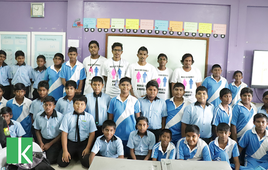 ފިރިހެން ކުދިން ނަރުސްކަމަށް ޝައުގުވެރިކުރުވަން އުދޭ އާއި އޭނާގެ ޓީމުން ހިންގި ހަރަކާތުގެ ތެރެއިން– ފޮޓޯ: ކޭއޯ