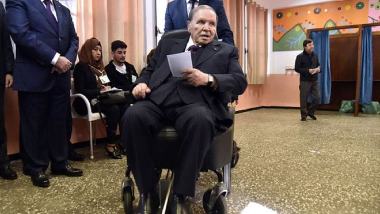 އަދި ވެރިކަމުގެ ފަސް ވަނަ ދައުރަކަށް ވާދަ ކުރައްވާނެކަން މިދިޔަ ފެބްރުއަރީ މަހު ބޫތަފްލީގާ އިއުލާން ކުރެއްވުމާ އެކު ގައުމުގެ ރައްޔިތުން ވަނީ ސިލްސިލާ މުޒާހަރާތައް ކުރަން ފަށައިފަ އެވެ. އޭގެ ފަހުން އޭނާ ވަނީ ވެރިކަމަށް ދެން ވާދަ ނުކުރައްވާނެ ކަމަށް ވިދާޅުވެފަ އެވެ. އޭނާ ނެރުއްވި ބަޔާނެއްގައިވާ ގޮތުން އިތުރު ދައުރަކަށް ވާދަ ނުކުރައްވަން ނިންމެވީ ސިއްހީ ހާލުކޮޅު ތަންނުދިނުމާއި އުމުރުފުޅު މާމައްޗަށް ދިޔުމުގެ ސަބަބުންނެވެ. ނަމަވެސް އެއާ އެކު ބޫތަފްލީގާ ވަނީ އެގައުމުގައި އަންނަ މަހުގެ 18ގައި ބާއްވަން އޮތް ރިޔާސީ އިންތިހާބު ވަކި މުއްދަތެއް ނެތް ގޮތަށް ފަސްކުރައްވައިފަ އެވެ.