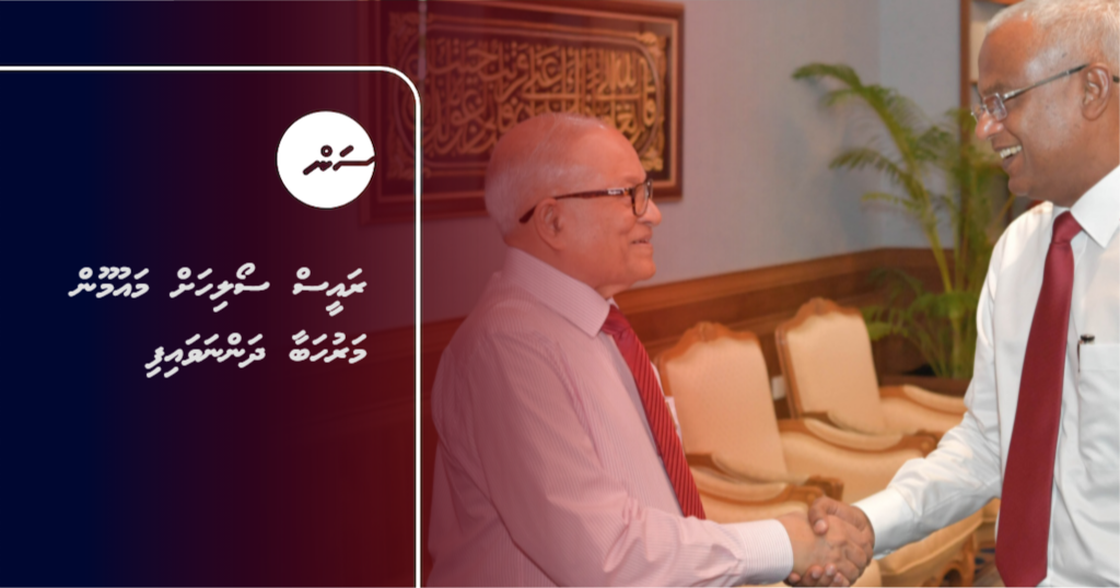 އިއްޔެ އޮތް ރައްޔިތުންގެ މަޖިލީހުގެ އިންތިހާބުގައި އެމްޑީޕީއަށް ބޮޑު ކާމިޔާބީއެއް ލިބުމުން، ކުރީގެ ރައީސް މައުމޫން އަބްދުލްގައްޔޫމް އެމްޑީޕީގެ ރައީސް، ރައީސް އިބްރާހިމް މުހައްމަދު ސޯލިހަށް މަރުހަބާ ދަންނަވައިފި އެވެ.