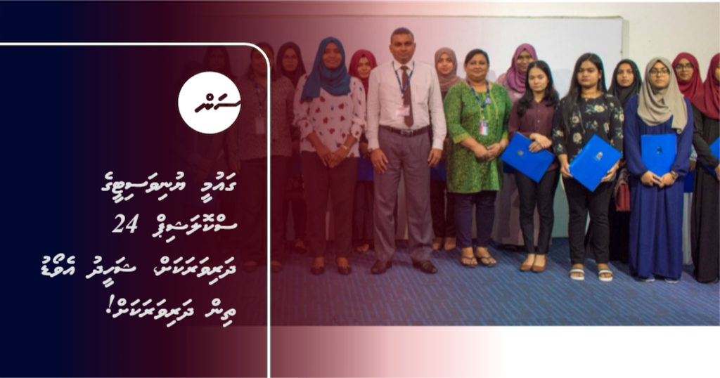 ދިވެހި ރާއްޖޭގެ ގައުމީ ޔުނިވާސިޓީގެ ސްކޮލަޝިޕް ލިބުނު 24 ދަރިވަރަކަށް އެކަމުގެ ލިޔުން ހަވާލުކޮށް، ޝަހީދު އެވޯޑް ތިން ދަރިވަރަކަށް ދީފި އެވެ.