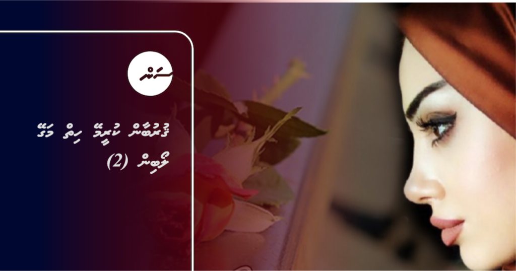 އެތަނުންފަހަތުގައި ހުރި ޒުވާނާ، ޒުބައިދާ ދައްތަ ބުނި ގޮތުންނަމަ އަމަން، އަހަރެންނާ ދިމާލަށް ބަލާލީ އަހަރެން އެ ދިމާލަށް ބަލަން ހުއްޓައެވެ. އަހަރެންގެ ނޭވޭ އެތެރެހަށީގައި ތާށިވިއެވެ. އެޒުވާނާ ހިނިތުންވެލިތަން ފެނި އަހަރެންނަށް ކުރެވުނުހާވެސް ކަމަކީ ހިންދިރުވާލުމެވެ. އަހަރެން ހީކުރީ އޭނާ ހިނިތުންވީ އަހަރެންނާ ދިމާލަށް ކަމަށެވެ. އެހެންނަމަވެސް ހަޤީގަތަކީ އެއެއްނޫނެވެ. އެ ޒުވާނާ ހިނިތުންވެލީ ޒުބައިދާ ދައްތަ ފެނިގެންކަން އަހަރެންނަށް އެނގުނީ ޒުބައިދާ ދައްތަ އަތުން އަވަހަށް ދާށޭ ބުނެ އިޝާރާތް ކޮށްލުމުންނެވެ. ވަގުތުން އަހަރެން ލަދުން ފެންވެރުނެވެ. އަހަރެންގެ މޫނުމައްޗަށް އަރާފައި ހުރި ލަދުވެތި ކުލަވަރު ފޮރުވަން މަސައްކަތް ކުރީމެވެ. މީހާގެ ނަފްސު ހަމައަކަށް އަޅުވާލަން މަސައްކަތް ކުރީމެވެ.