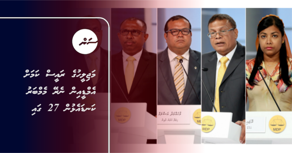 ނަވާރަ ވަނަ ރައްޔިތުންގެ މަޖިލީހުގެ ރައީސް ކަމަށް އެމްޑީއިން ނެރޭނެ މެމްބަރަކު މި މަހުގެ 27 ވަނަ ދުވަހު އެ ޕާޓީއިން ކަނޑައަޅާނެކަން "ސަން"އަށް ކަށަވަރުވެއްޖެ އެވެ.