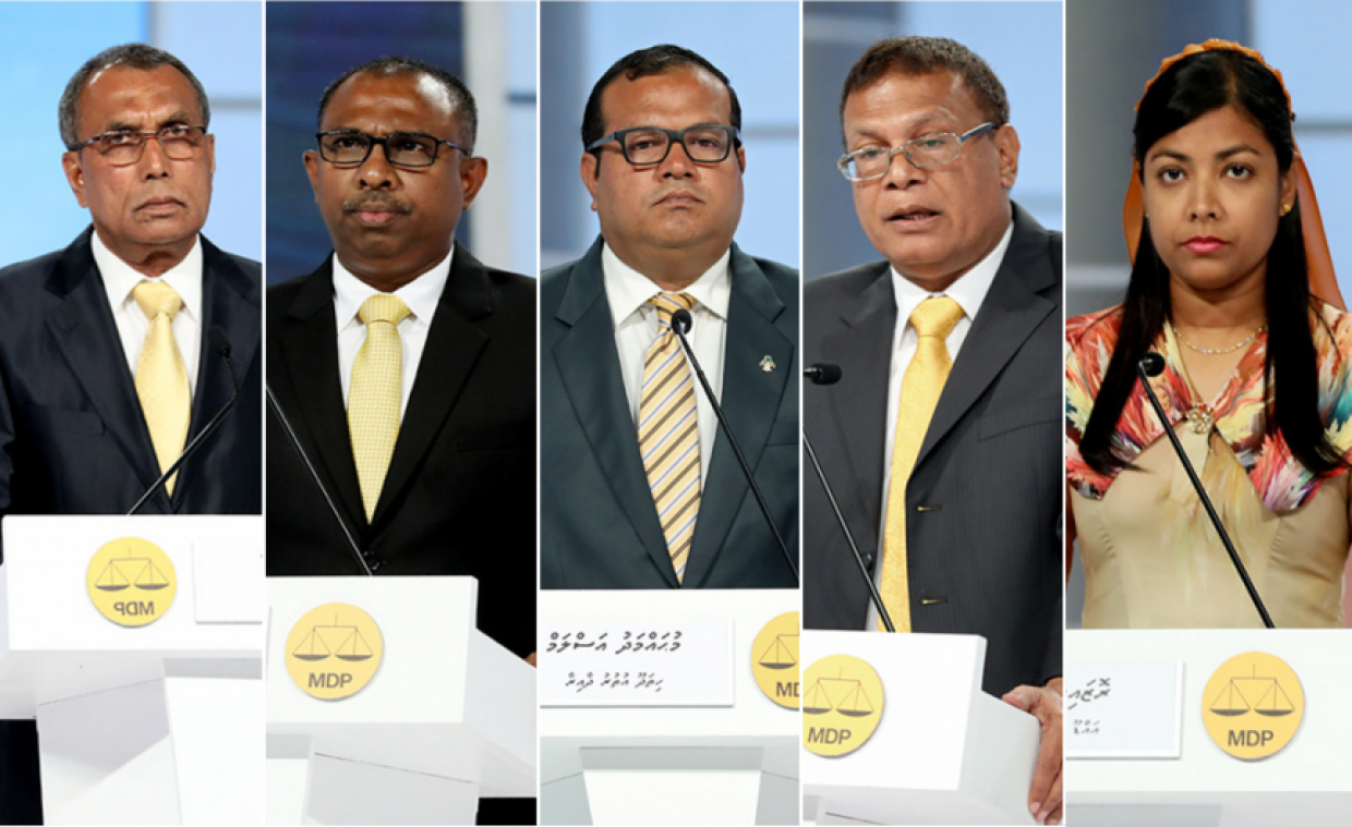 ރައްޔިތުންގެ މަޖިލީހުގެ ރައީސްގެ ރޭސް ހޫނު ވަމުން އަންނަ އިރު، އެމްޑީޕިގެ ތެރެއިން މިވަގުތު އެ މަގާމަށް ކުރިމަތިލެއްވުމުގެ ޝައުގުވެރިކަން ފާޅު ކުރައްވާފައި ވަނީ ވިލުފުށި ދާއިރާގެ އިންތިހާބީ މެމްބަރު ހަސަން އަފީފް އާއި ހިތަދޫ އުތުރު ދާއިރާގެ މެންބަރު މުހައްމަދު އަސްލަމްއާއި އައްޑޫ މީދޫ ދާއިރާގެ މެންބަރު ރޮޒައިނާ އާދަމް އާއި މަރުދޫ ދާއިރާގެ މެންބަރު އިބްރާހިމް ޝަރީފް އަދި މެދު ހެންވޭރު ދާއިރާގެ މެންބަރު އަލީ އާޒިމެވެ.