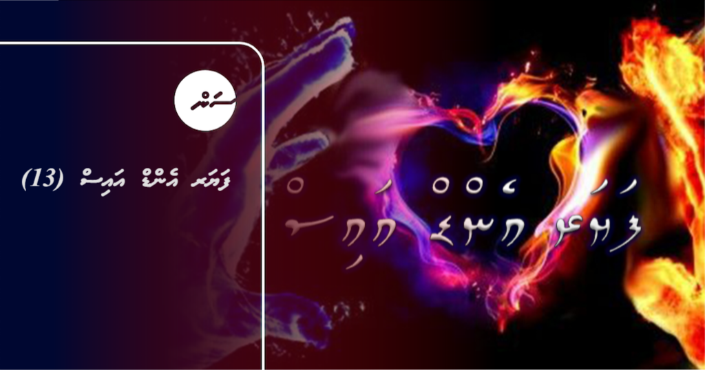 އަންހެންކުއްޖާ ލޯ ކުޑަކޮށްލާފައި ބަލައިލީ ރުޅީގެ ނަޒަރަކުންނެވެ. ބާރުބާރަށް ހިނގާލާފައިގޮސް ދޮރު ލައްޕާ ތަންޑު އަޅުވާލުމުން އާރިޒް ހުޅުވާނެ އިރަކަށް އިންތިޒާރުކުރިއެވެ. ހާދަ ކުޑަ ބައްދަލުވުމެކެވެ. އެކަމަކު އަދިވެސް ފެންނާނެކަމާއިމެދު އޭނަ ޝައްކެއް ނުކުރެއެވެ. ދެމީހުންގެ ބެލްކަނީ މިހިރީ ދާދި ކައިރީގައެވެ. އަޑު ފޯރާހާ ކައިރިއެވެ. އަވަށްޓެރިންނެވެ. ބީރައްޓެހިންނަށްވިޔަސް ފުރަތަމަ ބައްދަލުވުމުން ދެމެދުގައި އޭނަ ވާހަކަ ދައްކައިފިއެވެ. ފުރަތަމަ ނަޒަރުން އަންހެންކުއްޖާގެ ހިތުގައި އޭނައާއިމެދު އިހުސާސްތަކެއް އުފެދިއްޖެއެވެ. ރުޅިވެރިކަމަކީވެސް އިހުސާސެއް ނޫންހެއްޔެވެ. ކޮންމެހެން ފެންނައިރަށް ހިތާވާކަށް ނުޖެހޭނެއެވެ. އަންހެންކުދިން ފިނިފެންމަލަށް އެހުންނަ ވަރުގަދަ ލޯތްބަކާއިމެދުވެސް އާރިޒް ހައިރާންވިއެވެ.