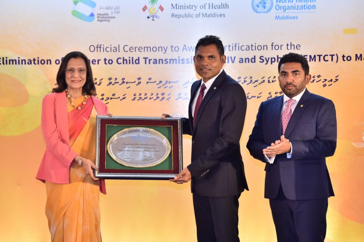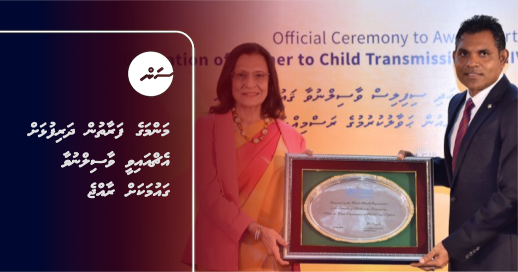 މަންމަގެ ފަރާތުން ދަރިފުޅަށް އެޗްއައިވީ އަދި ސިފިލިސް ވާސިލް ނުވާ ގައުމެއްގެ ގޮތުގައި ދުނިޔޭގެ ސިއްހަތު ޖަމްއިއްޔާ، ޑަބްލިއެޗްއޯއިން ރާއްޖެ ކަނޑައަޅައިފި އެވެ.