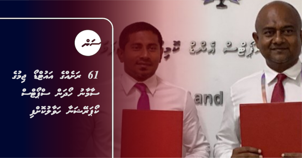 61 ރަށެއްގެ އައުޓްޑޯރ ޖިމުގެ ސާމާނު ސަޕްލައި ކޮށްދިނުމަށް ސްޕޯޓްސް ކޯޕަރޭޝަނާއި ހަވާލު ކުރުމަށް ބޭއްވި ބައްދަލުވުމުގެ ތެރެއިން --- ފޮޓޯ// ޔޫތް މިނިސްޓްރީ
