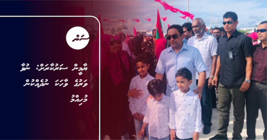 "އެހެންވީމަ 100 އަކުން ސުމެއް ނޫންތޯ މި ލިބެނީ [މި ސަރުކާރަށް]. މިއީ ރަށްރަށުގައި ތިއްބަވާ ރައްޔިތުންނަށް ދަތިވާ ކަންތައް. އެހެންވީމަ މި ކަންތައްތައް ހައްލު ނުކޮށް މިއަށްވުރެ ބޮޑެތި ކަންތައް ހައްލު ކުރާ ވާހަކަ ބުނީމަ ރައްޔިތުންގެ ތެރެއިން ތަންދޮރު އޮޅުން ފިލާ މީހުން އެބަ ޖެހޭ ވިސްނަން،" ރައީސް ޔާމީން ވިދާޅުވިއެވެ.