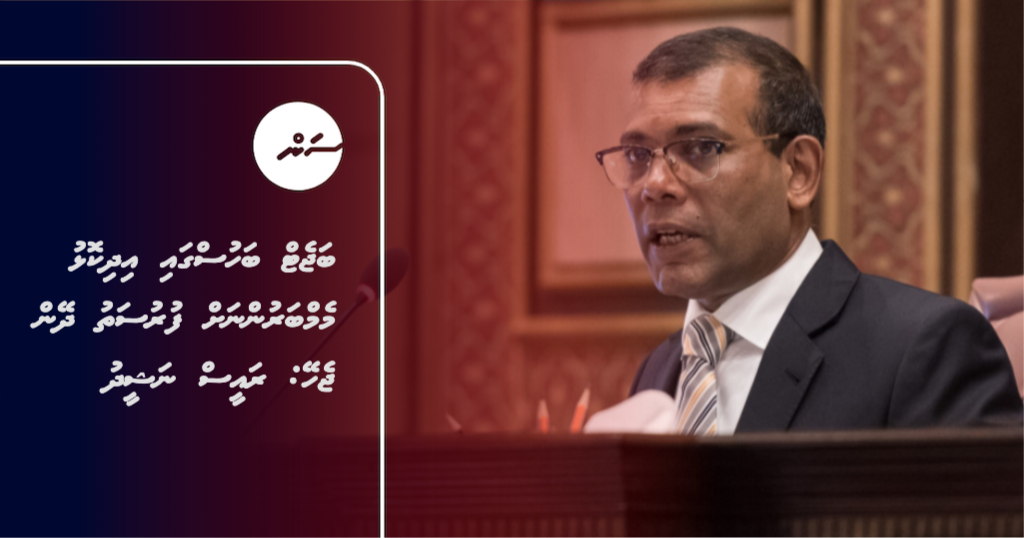 "ސަރުކާރު ހިންގާ ޕާޓީން ބަޖެޓެއް އެކުލަވާލައި މަޖިލީހަށް ހުށަހެޅީމަ އެޔަށް ވާދަވެރި ޕާޓީތަކުން ޖަވާބު ދޭން ޖެހޭނެ، އެއީ ރާއްޖޭގެ ސިޔާސީ ނިޒާމަކީ. އިރާދަކުރެއްވިއްޔާ އަޅުގަނޑު ބަލާނީ މި މަޖިލިސް ވެސް އަދި އަޅުގަނޑު ޝާމިލުވާ އެހެން ކަންކަންވެސް މި ނިޒާމުން ކުރިއަށް ދެވޭތޯ،" ނަޝީދު ވިދާޅުވި އެވެ.
