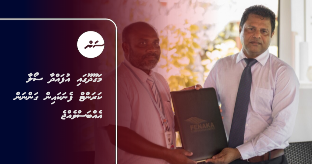 ކަރަންޓް ވިއްކުމަށް ފެނަކައާއި މަގޫދޫ ކައުންސިލްއާއެކު ސޮއިކުރި އެއްބަސްވުމަށްފަހު ފެނަކަ އެމްޑީ އަދި މަގޫދޫ ކައުންސިލްގެ ރައީސް---- ފޮޓޯ؛ ފެނަކަ
