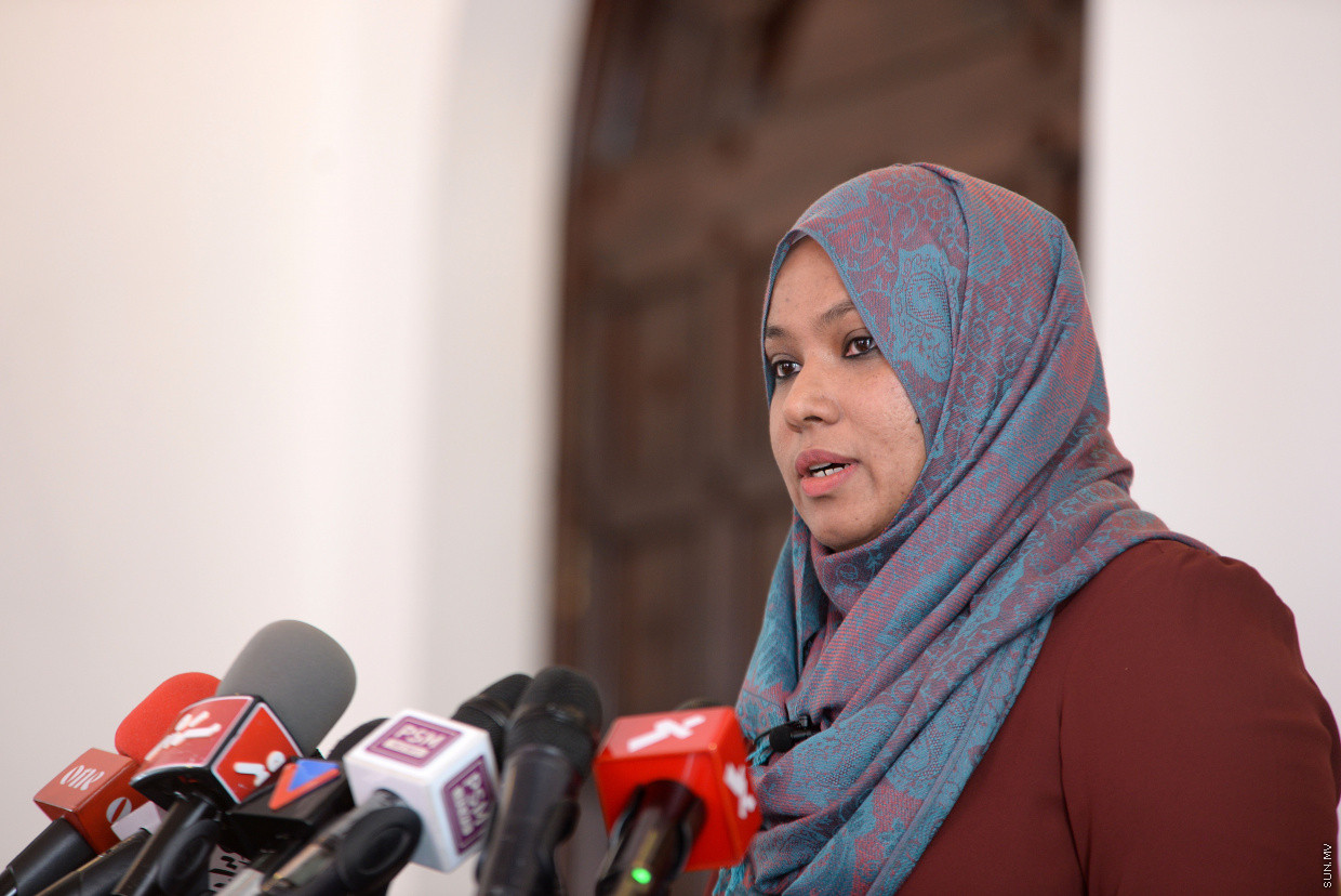 ރައްޔިތުންގެ މަޖިލީހުގެ އަމީން އާންމު ފާތިމަތު ނިއުޝާ ގައުމީ ފެތުމުގެ މުބާރާތުން ހަތަރު ވަނަ ހޯއްދެވުމުން ރައްޔިތުންގެ މަޖިލީހުގެ ރައީސް މުހައްމަދު ނަޝީދު އެކަމަނާއަށް މަރުހަބާ ދަންނަވައިފި އެވެ.