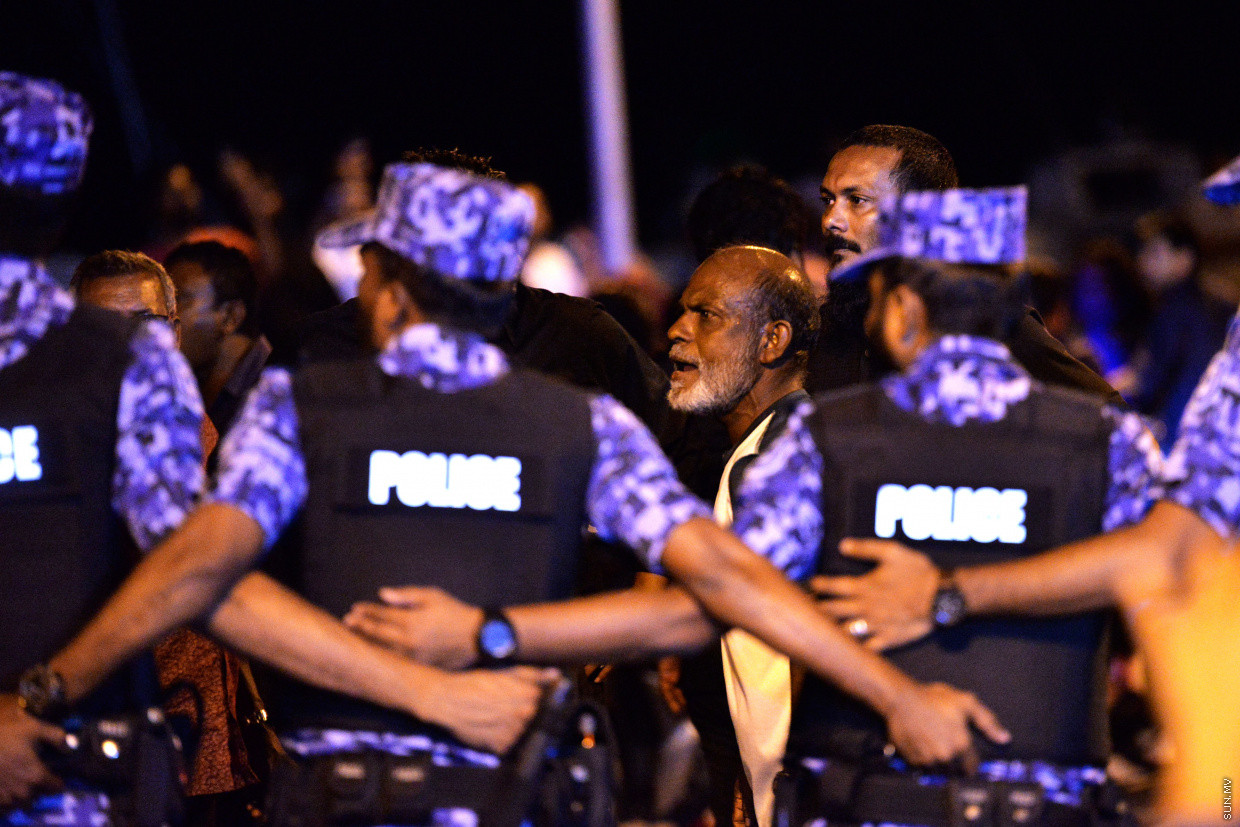 ކުރީގެ ރައީސް އަބްދުﷲ ޔާމީންގެ ޖަލު ހުކުމް އިންސާފުވެރި ނޫން ކަމަށް ބުނެ އެމަނިކުފާނު މިނިވަންކުރަން ގޮވާލައި މިރޭ އިދިކޮޅު ޕީޕީއެމް-ޕީއެންސީއިން މާލޭގެ މަގުތަކުގައި ކުރި މުޒާހަރާ ފުލުހުން ރޫޅާލައިިފިއެވެ.
