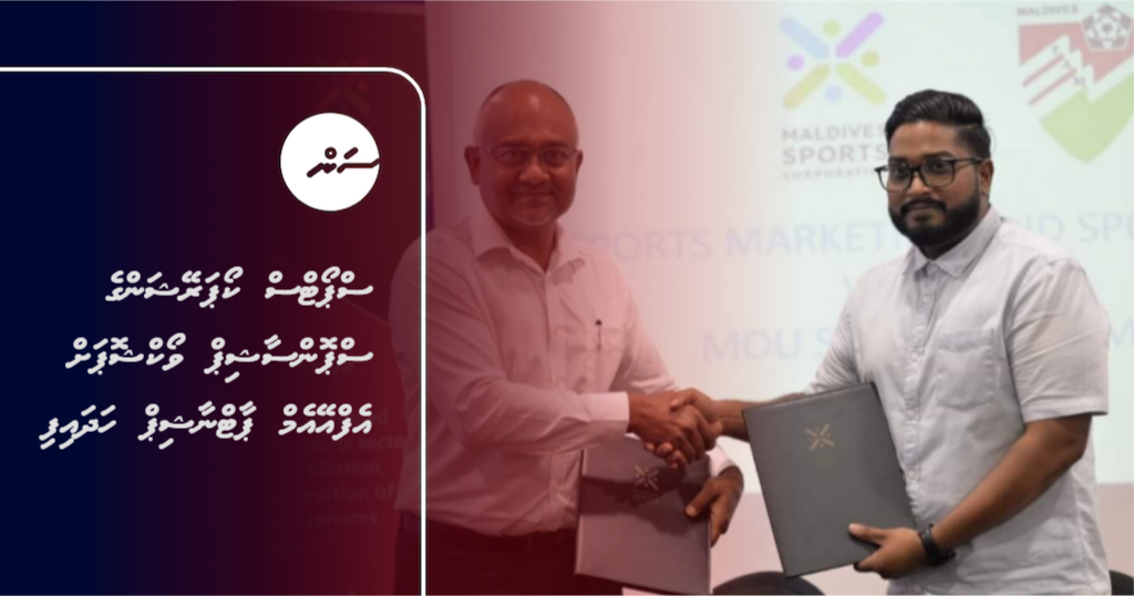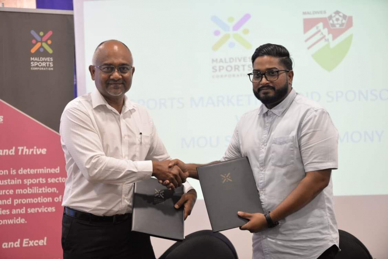 ސްޕޯޓްސް ކޯޕަރޭޝަނާއި އެފްއޭއެމްއާ ދެމެދު މިއަދު ވެވުނު އެއްބަސްވުމުގައި ސޮއެ ކުރުމަށް ބޭއްވި ބައްދަލުވުމުގެ ތެރެއިން --- ސަން ފޮޓޯ// ފަޔާޒް މޫސާ