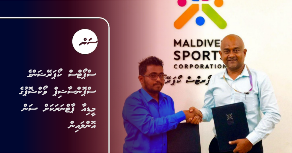 ސްޕޯޓްސް ކޯޕަރޭޝަން އޮފީހުގައި މިއަދު ބޭއްވި ހާއްސަ ބައްދަލަވުމުގައި އެ ކުންފުނީގެ ފަރާތުން އެއްބަސްވުމުގައި ސޮއި ކުރެއްވީ އެ ކުންފުނީގެ އެމްޑީ މައުރޫފް އަހްމަދު (މާއްޓޭ) އެވެ. މި އެއްބަސްވުމުގައި ސަން މީޑިއާގެ ފަރާތުން ސޮއި ކުރީ ކުންފުނީގެ މާކެޓިންގް މެނޭޖަރު އަހްމަދު މުސްލިމެވެ.