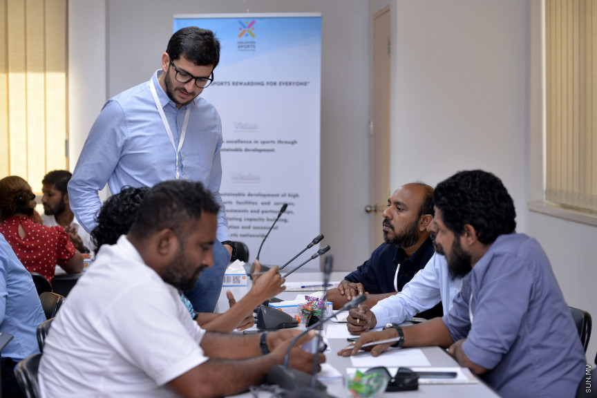 ޖެނުއަރީ 28، 2020: މޯލްޑިވްސް ސްޕޯޓްސް ކޯޕަރޭޝަނުން އިސްނަގައިގެން ސްޓެލްކޯ ހޯލްގައި ކުރިއަށް ދާ މާކެޓިންގް އާއި ސްޕޮންސާޝިޕްގެ ހާއްސަ ވޯކްޝޮޕްގެ ތެރެއިން -- ސަން ފޮޓޯ/ ފަޔާޒު މޫސާ