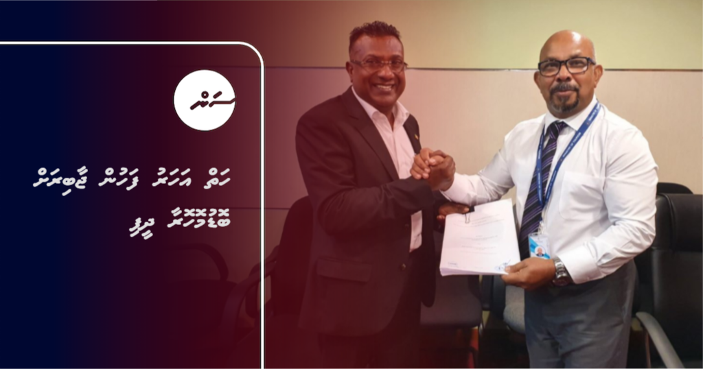 ޓޫރިޒަމް މިނިސްޓްރީގައި މިއަދު އޮތް ރަސްމިއްޔާތުގައި އެއްބަސްވުމުގައި ޓުއަރިޒަމް މިނިސްޓްރީގެ ފަރާތުން ސޮއިކުރެއްވީ ސްޓޭޓް މިނިސްޓަރު އަހުމަދު ސޯލިހެވެ. ކުންފުނީގެ ފަރާތުން އެއްބަސްވުމުގައި ސޮއިކުރެއްވީ ޖާބިރެވެ.